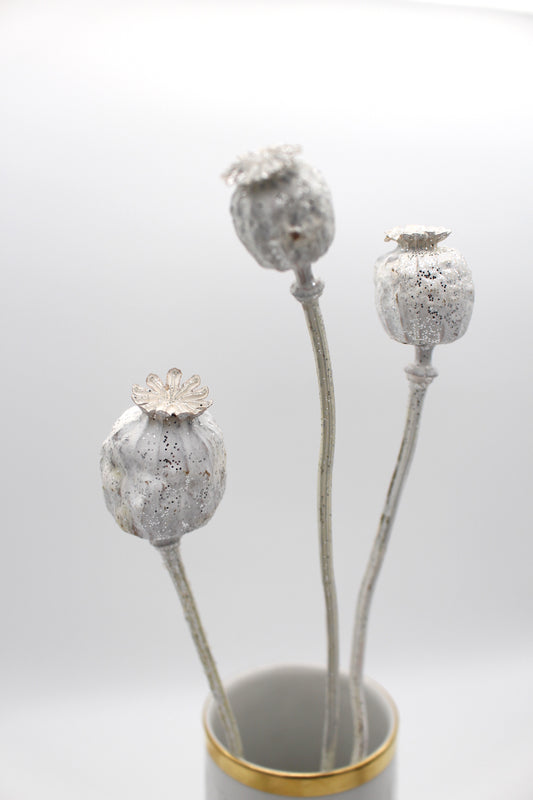 Mohnkapsel weiß Glitzer 3 Stück