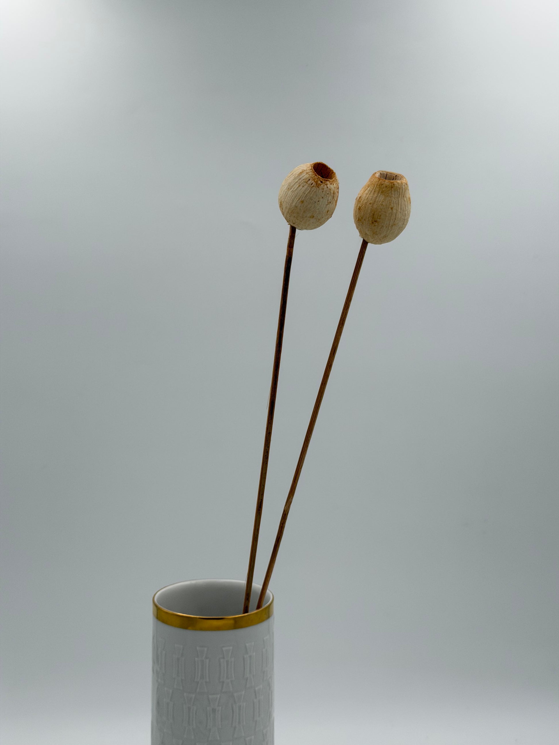 Getrocknete Samenkapsel am Holzstab creme Natur 2 Stück
