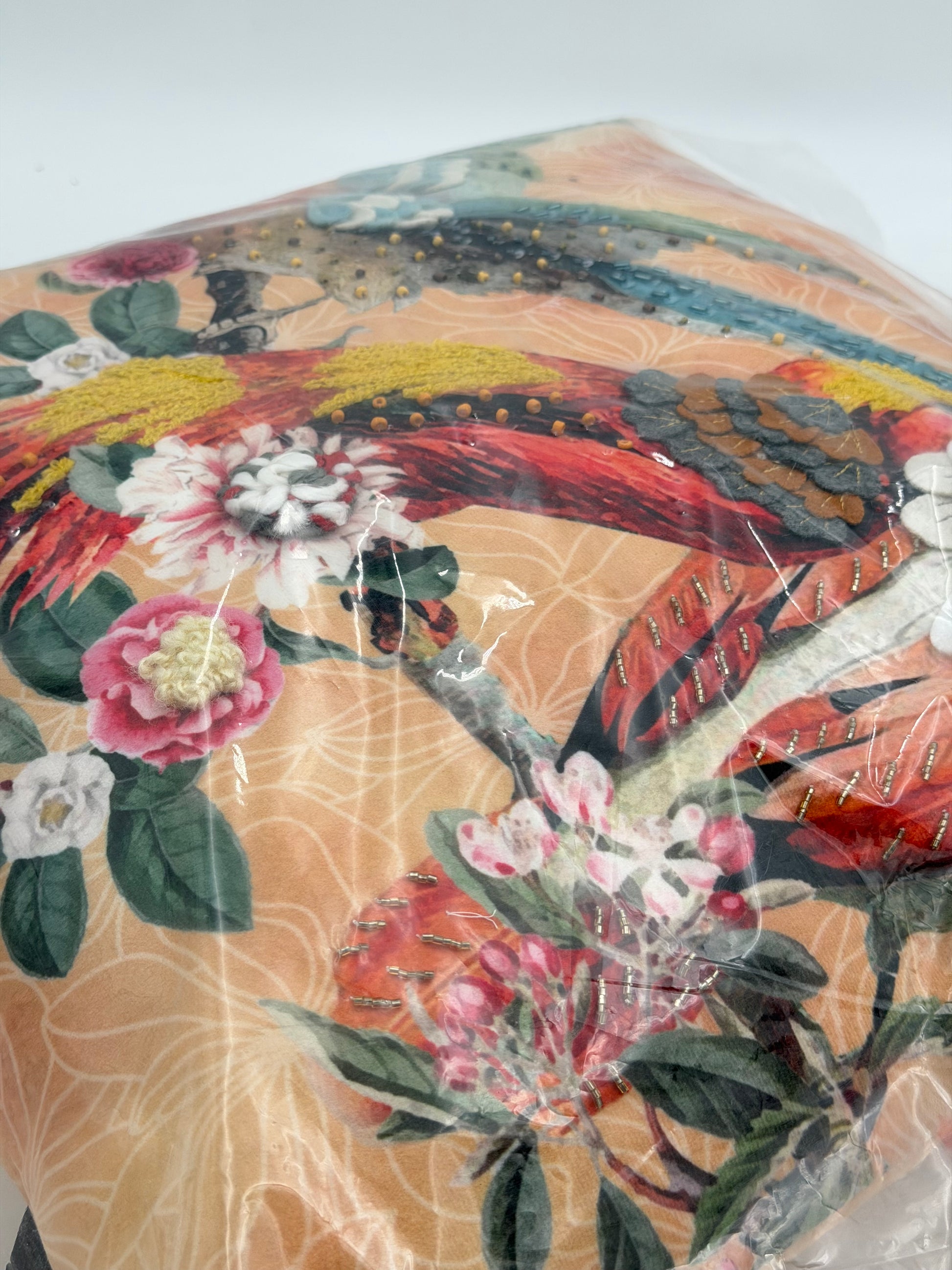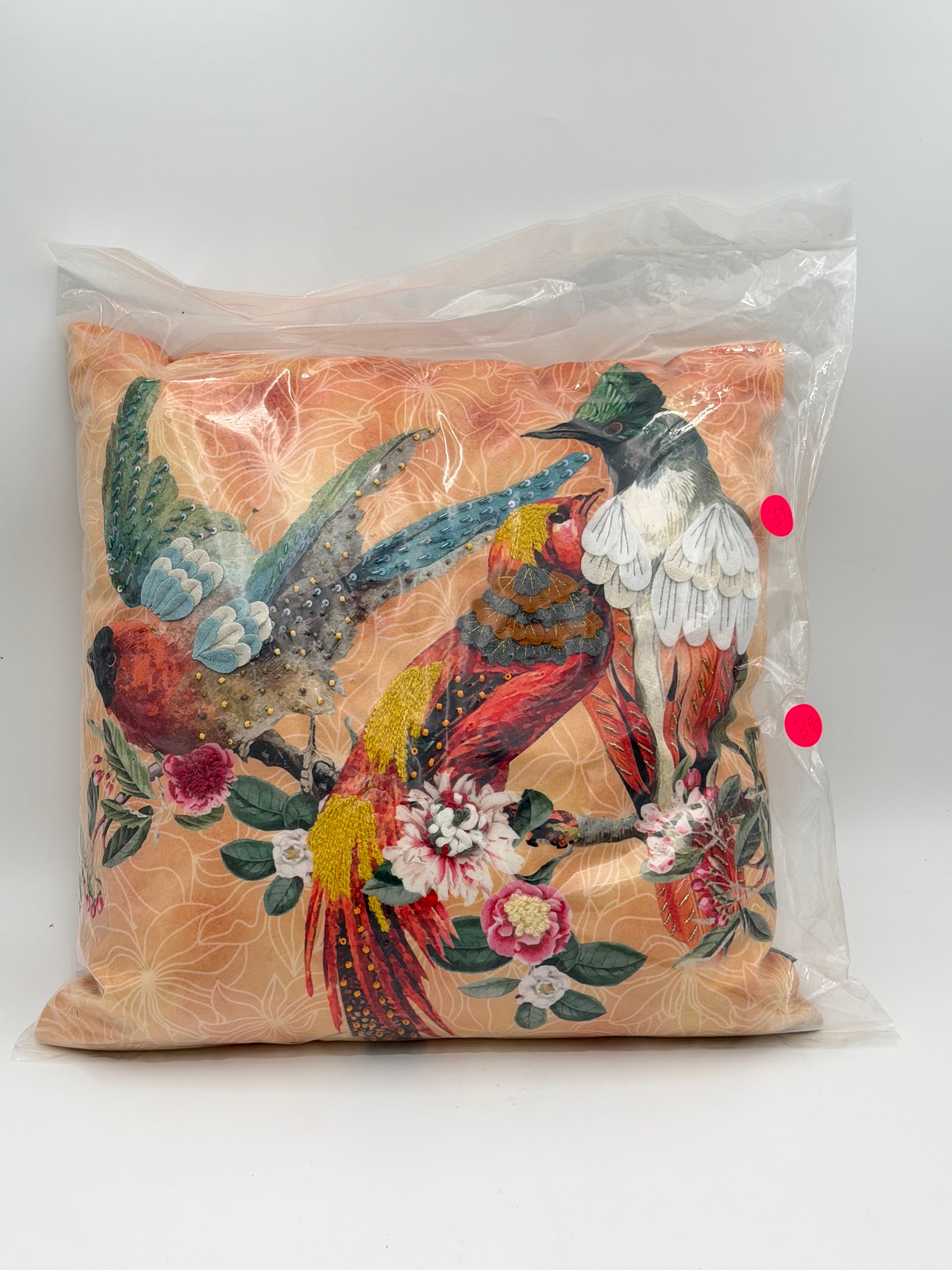 Drei süße Vögel schmücken die Vorderseite dieses Kissens von Mars & More. Einige Details, wie zum Beispiel die Blüten oder Flügel, wurden aufgenäht und sind deshalb hervorgehoben. Dadurch wirkt das Dekokissen sehr hochwertig und ist ein echter Hingucker auf jedem Sofa.