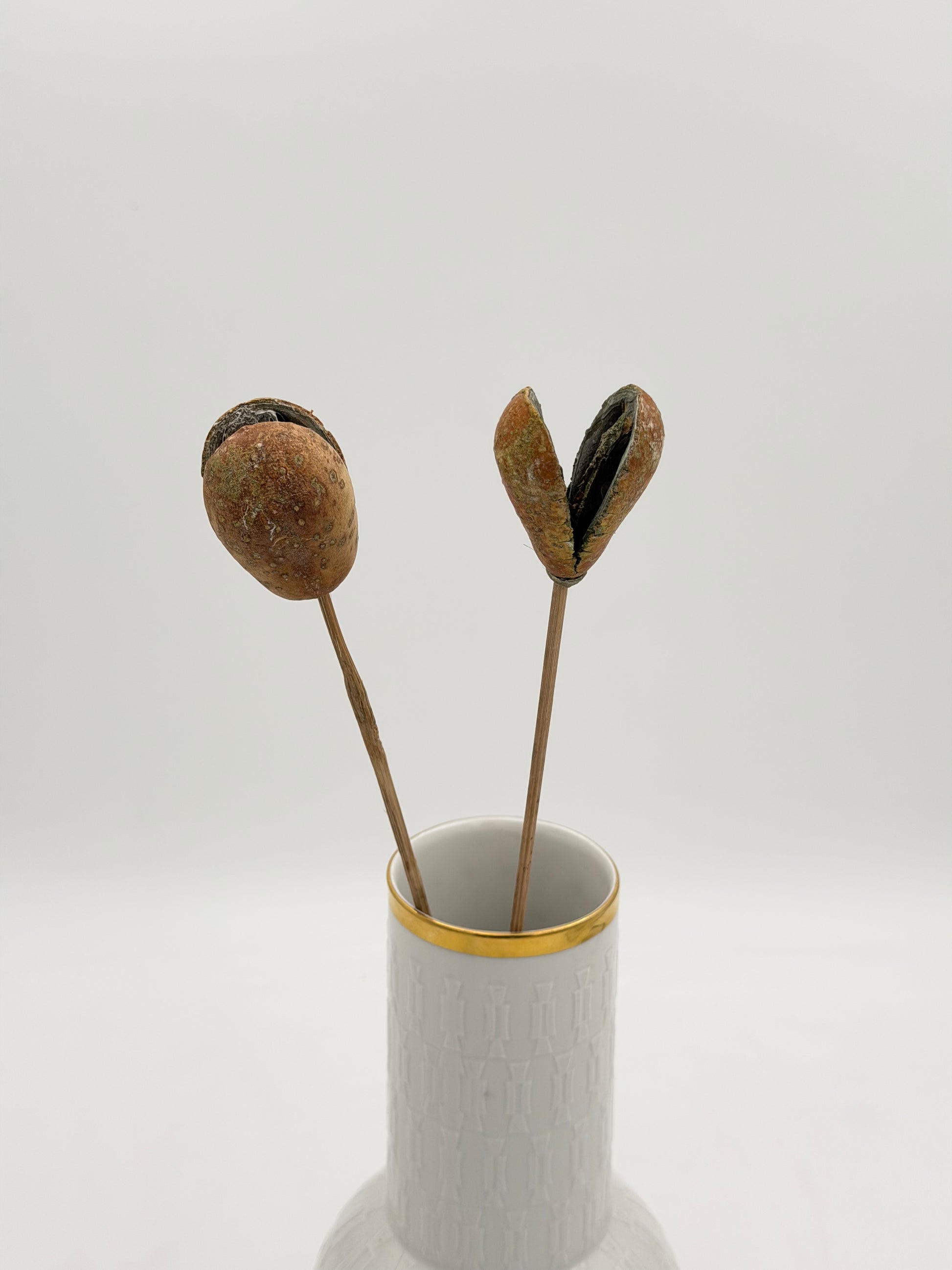 Diese dekorativen getrockneten Fruchthülsen sehen außergewöhnlich und besonders aus. Dank des Holzstabs auch perfekt für Gestecke und Sträuße geeignet.