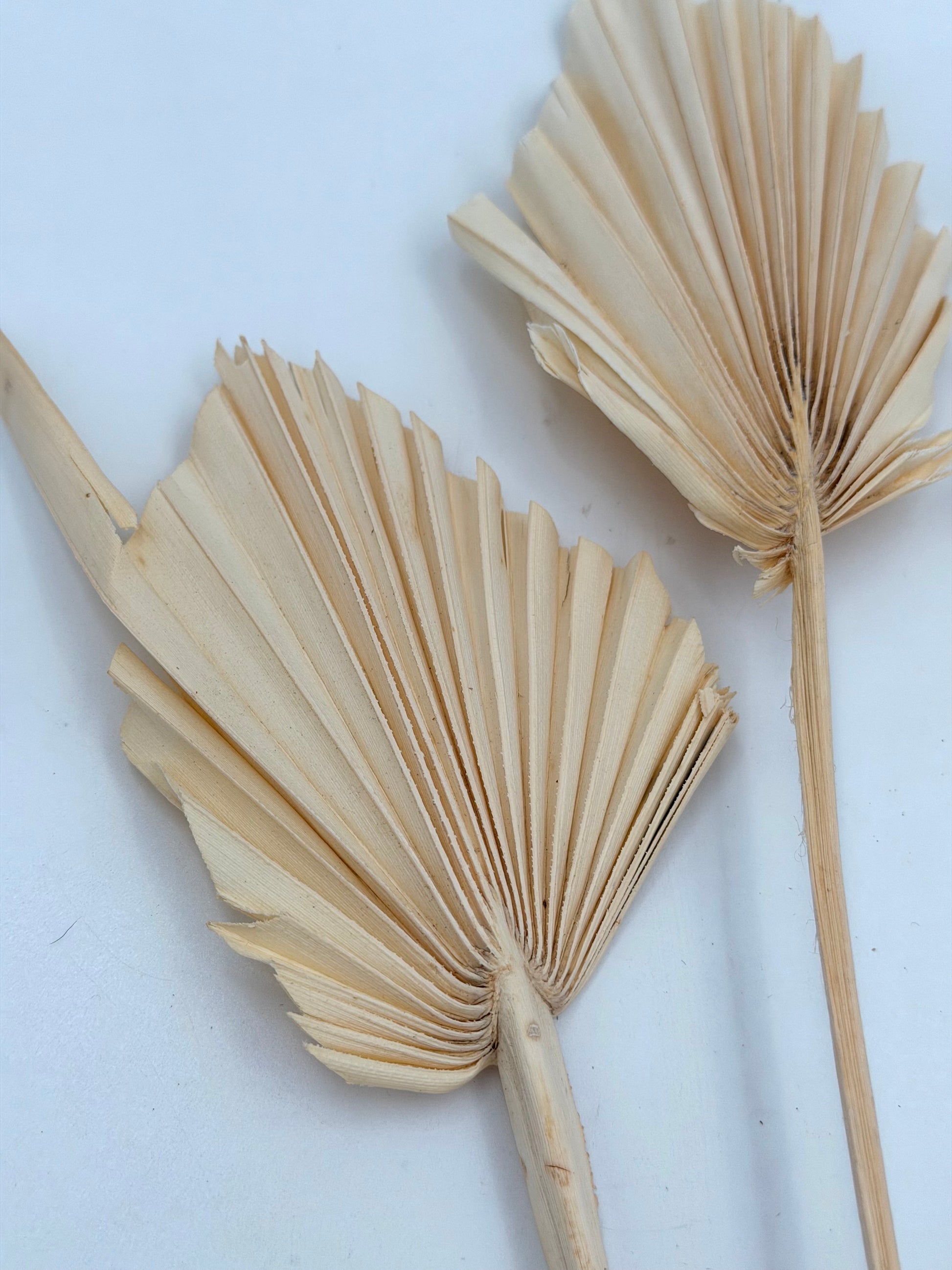 Das breite Blatt wurde konisch zurechtgeschnitten und ist in dieser Form als Palmspear bekannt. Mit diesem Aspekt wird es gerne in der Trauerfloristik genutzt, aber auch gern in Trockensträußen verwendet. Besonders beliebt auch für Dekorationen im Boho-Stil.