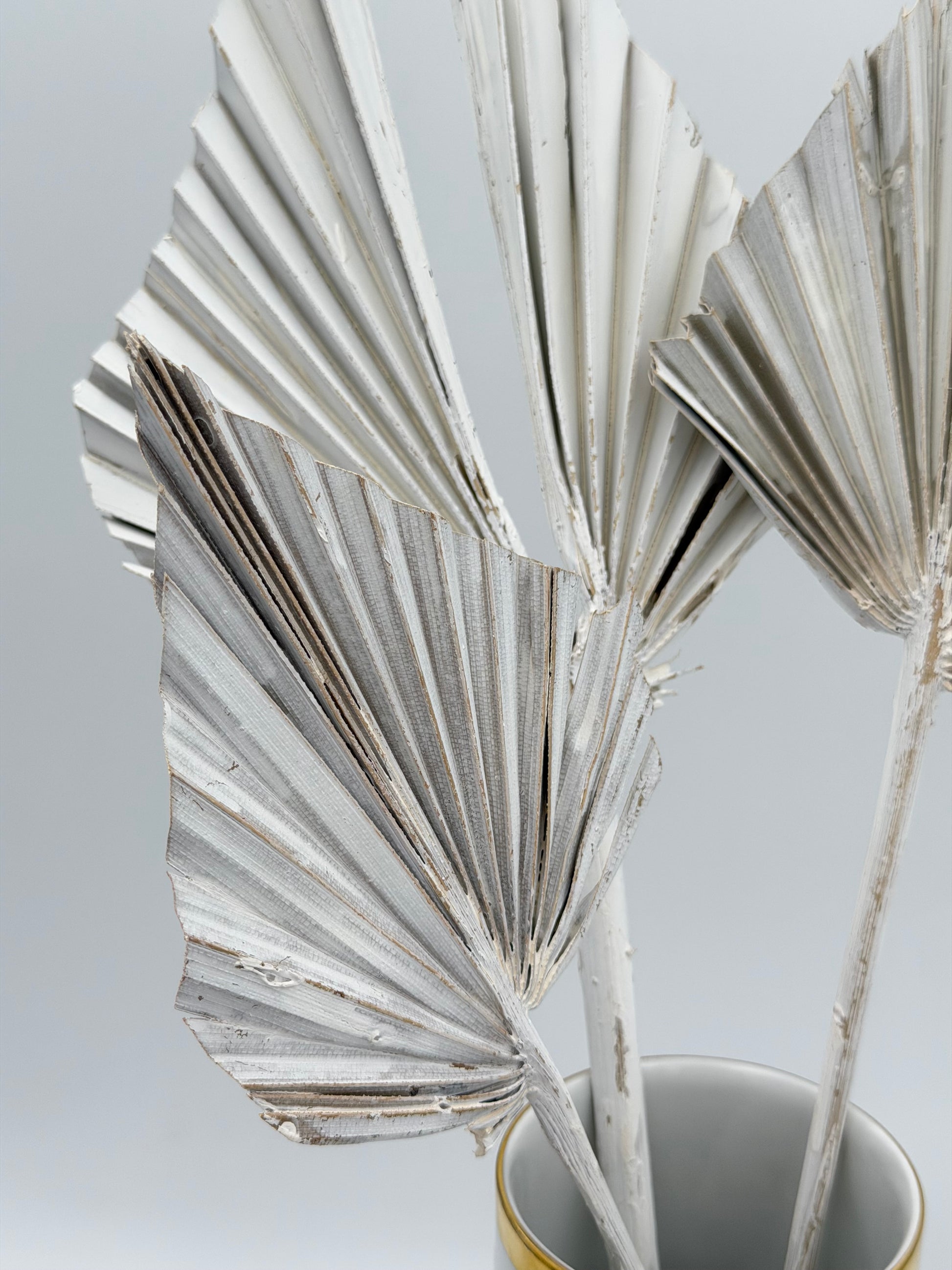 Das breite Blatt wurde konisch zurechtgeschnitten und ist in dieser Form als Palmspear bekannt. Mit diesem Aspekt wird es gerne in der Trauerfloristik genutzt, aber auch gern in Trockensträußen verwendet. Besonders beliebt auch für Dekorationen im Boho-Stil.