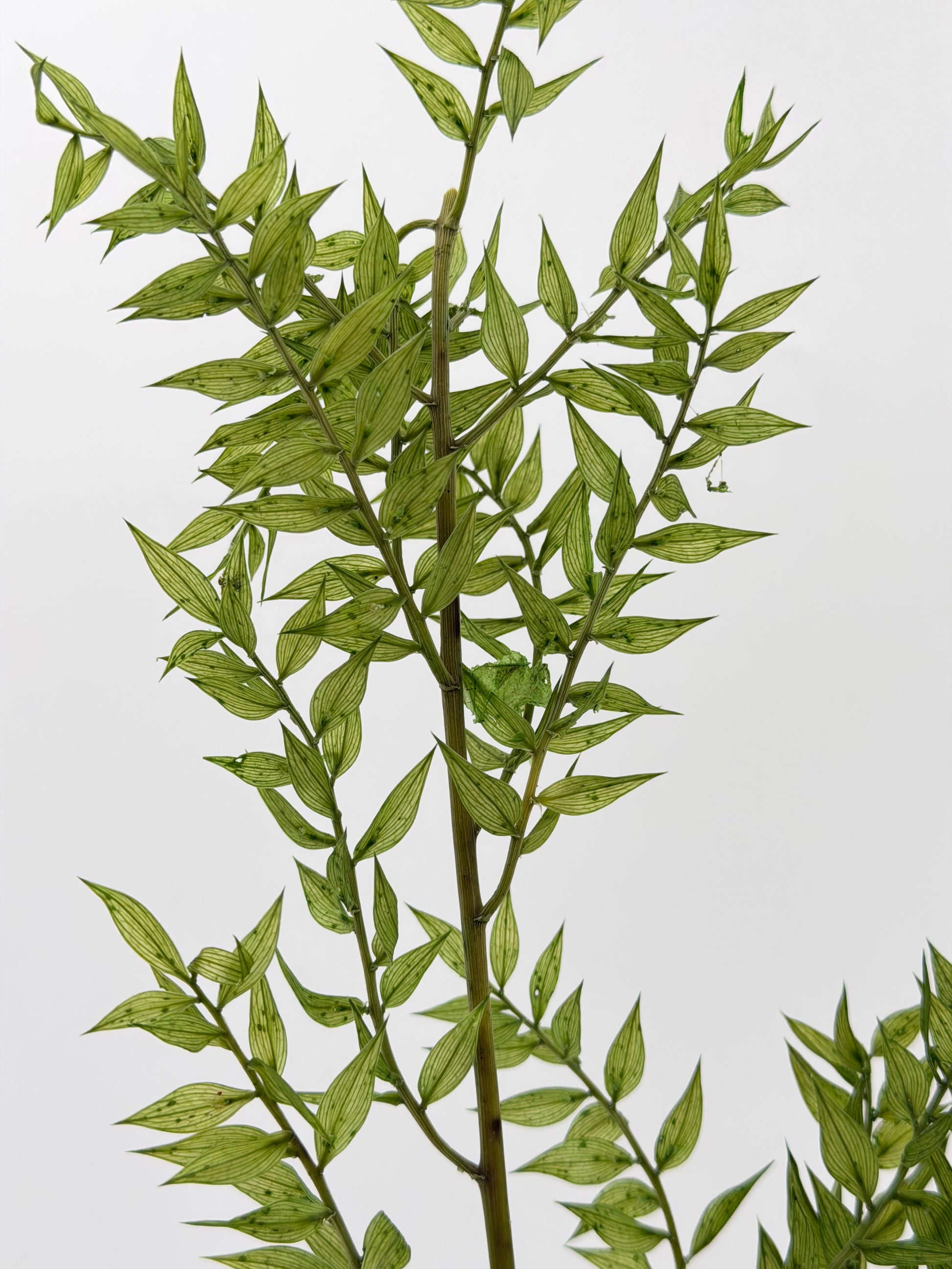 Ruscus, auch Mäusedorn genannt, ist das perfekte "Füllmaterial" für Trockensträuße und -gestecke. Er sieht sehr edel aus und lässt sich vielseitig nutzen. Auch sehr beliebt sind die kleinen spitzen Blätterchen in Loops, Haarkränzen oder ähnlichen kleinen Accessoires.