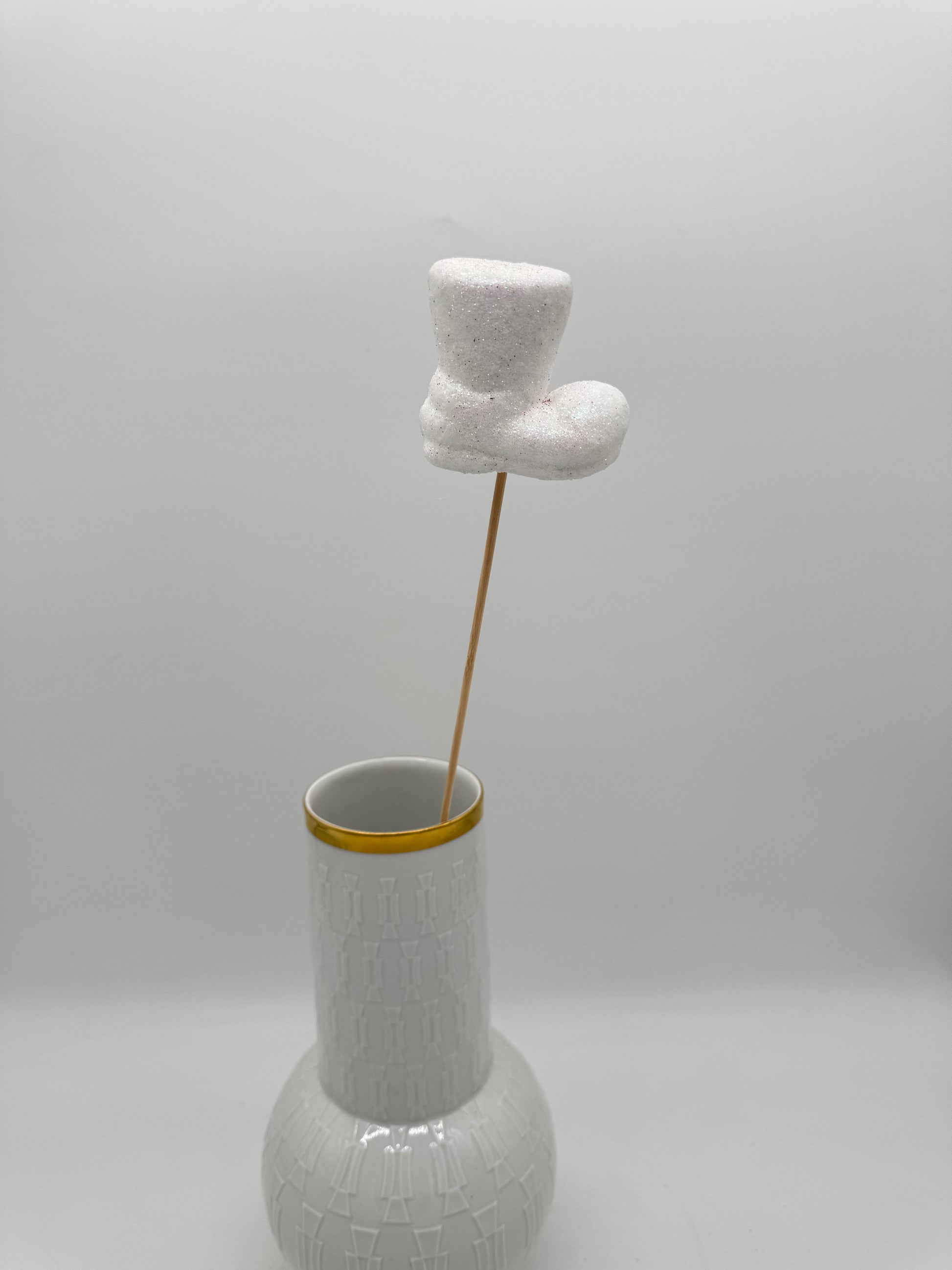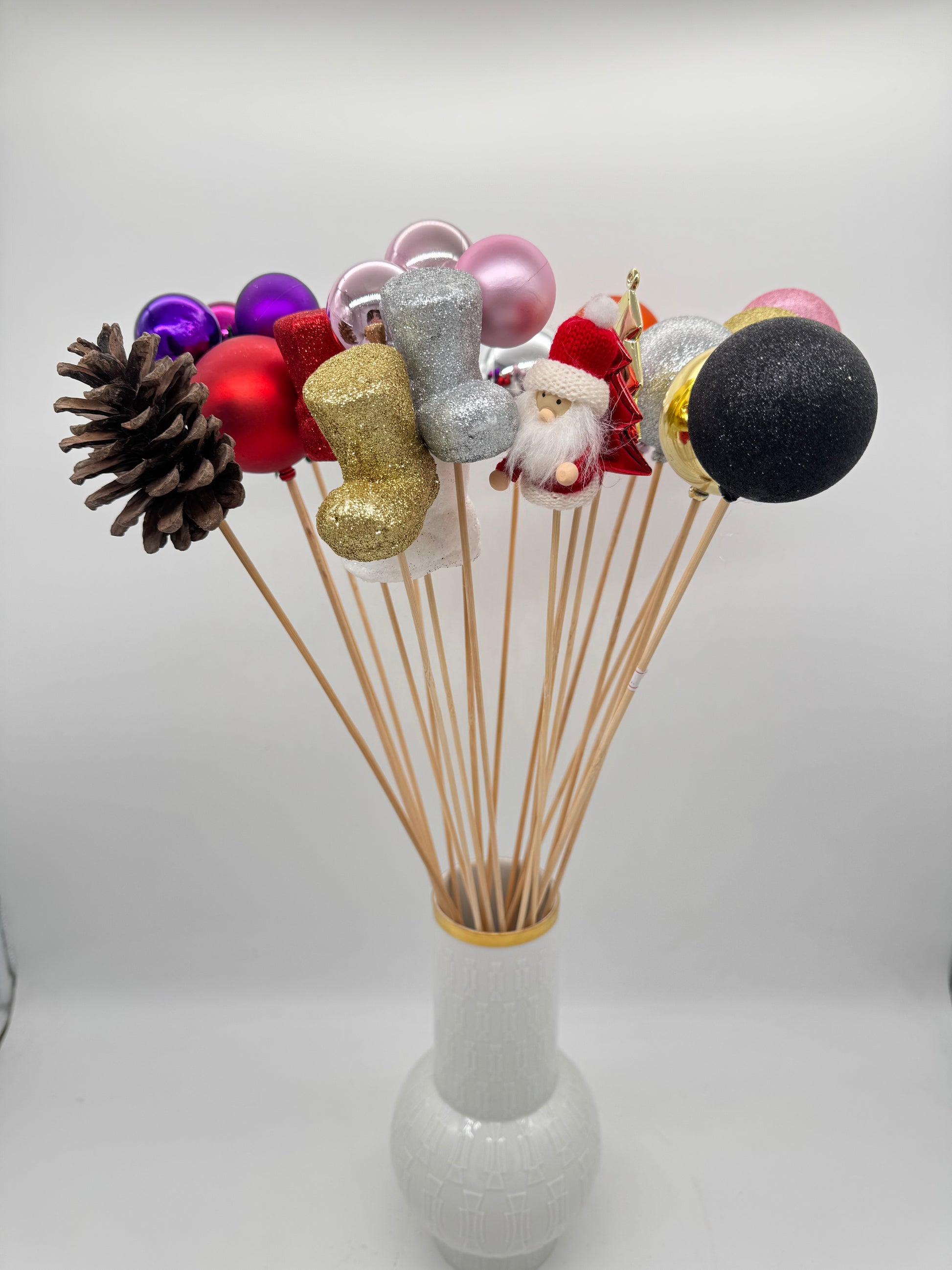 Weihnachtskugeln müssen nicht immer an den Baum! Mit dieser Deko am Stab wird sowohl Blumenstrauß, als auch Gesteck zum weihnachtlichen Hingucker.